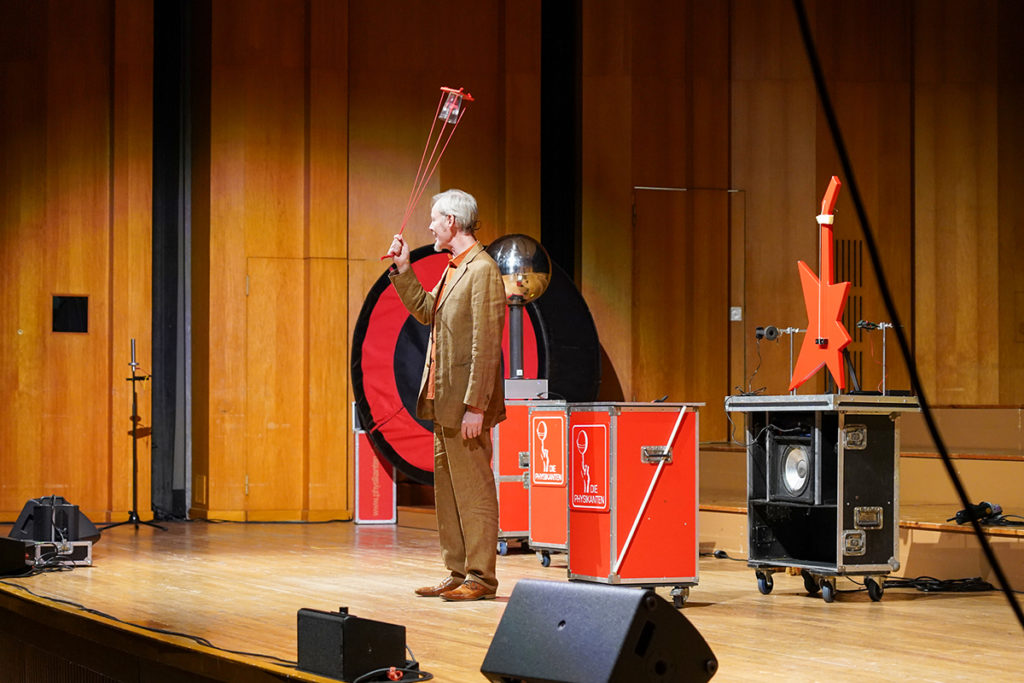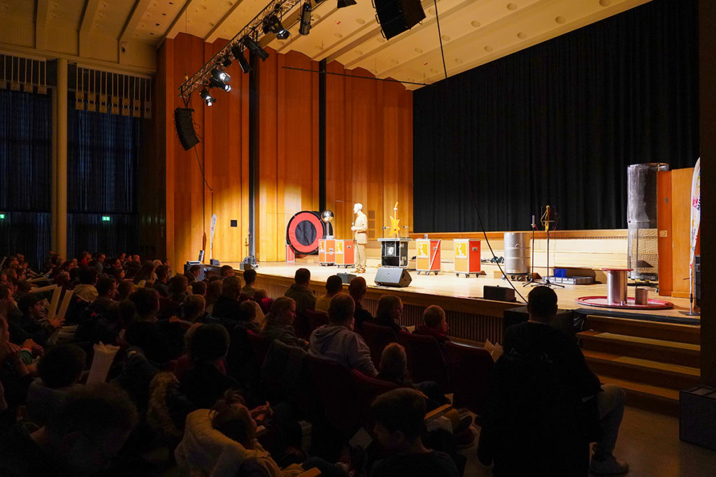 Die Konzerthalle Bad Salzuflen bot die ideale Kulisse für die energiegeladenen Experimente der Physikanten. Von der ersten Minute an war die Begeisterung der kleinen Forschenden spürbar – leuchtende Augen, staunende Gesichter und mitreißende Beifallsbekundungen zeugten von der Faszination, die in der Halle herrschte.