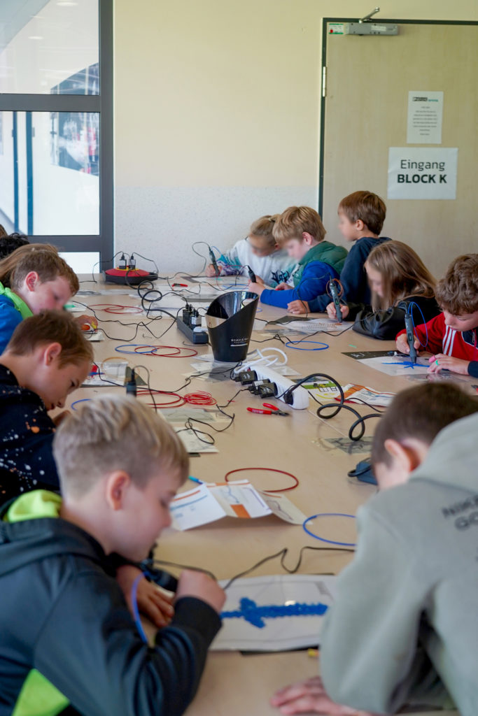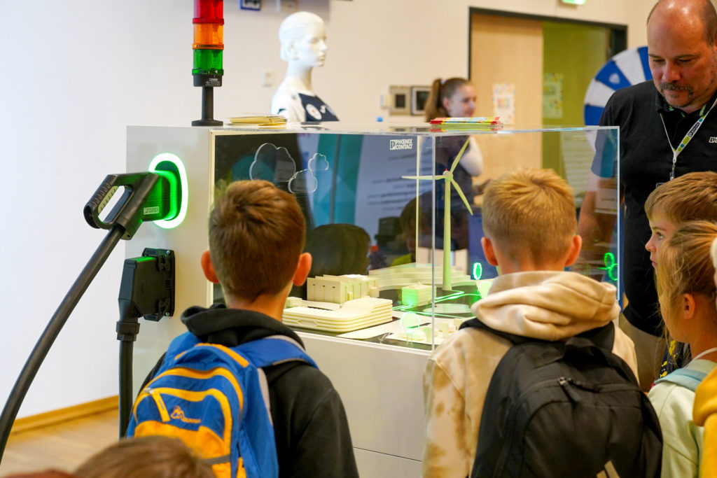 Das erlebten ca. 2.000 Kinder aus Kita und Grundschule am 13. September beim großen MINTmachen in der PHOENIX CONTACT arena auf dem Innovation Campus in Lemgo. Wir hatten eingeladen und boten den jungen Gästen eine bunte „MINT-Mischung“ zum Selbermachen. So wurde eine echte Spritzgussmaschine in der Halle installiert, die live vor Ort Bausteine aus Kunststoff produzierte, um damit 3D-Figuren zu bauen. Das Lüttfeld-Berufskolleg präsentierte Versuche aus der Medizintechnik und am Stand der TH OWL konnte man eigene Glücksräder bauen. Wie schnell man den Handball werfen kann, konnten die Kinder beim TBV Lemgo ausprobieren. Rapschool NRW installierte ein mobiles Studio, wo die Nachwuchskünstler:innen rappen und ihr Lied selbst abmischen konnten. Dazu gab es viele Stände, an denen auch selbst gebaut werden konnte oder z. B. Roboter selbst programmiert werden konnten. Namhafte lippische Unternehmen, wie z. B. Weidmüller, Phoenix Contact, Gebr. Brasseler, OWL-IT, DeTec und SH-Wire fesselten die Kinder mit spannender Technik. Am Stand vom Unternehmen Facility-Service-Lippe wurden 500 Euro für den Förderverein einer anwesenden Einrichtung verlost. Insgesamt umfasste das Angebot über 40 MINTmach-Aktionen, die von den Kindern begeistert angenommen wurden.