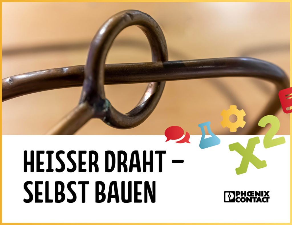 In den Werkstätten von Phoenix Contact baust Du deinen eigenen “Heißen Draht”. Keine Angst! Am heißen Draht verbrennt man sich nicht. Aber Du kannst damit deine Geschicklichkeit testen, in dem du versuchst, eine Schlaufe um den Draht zu führen und diesen nicht zu berühren.